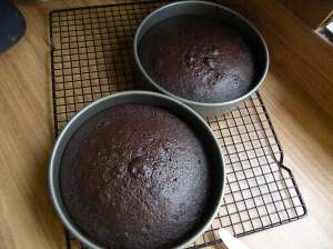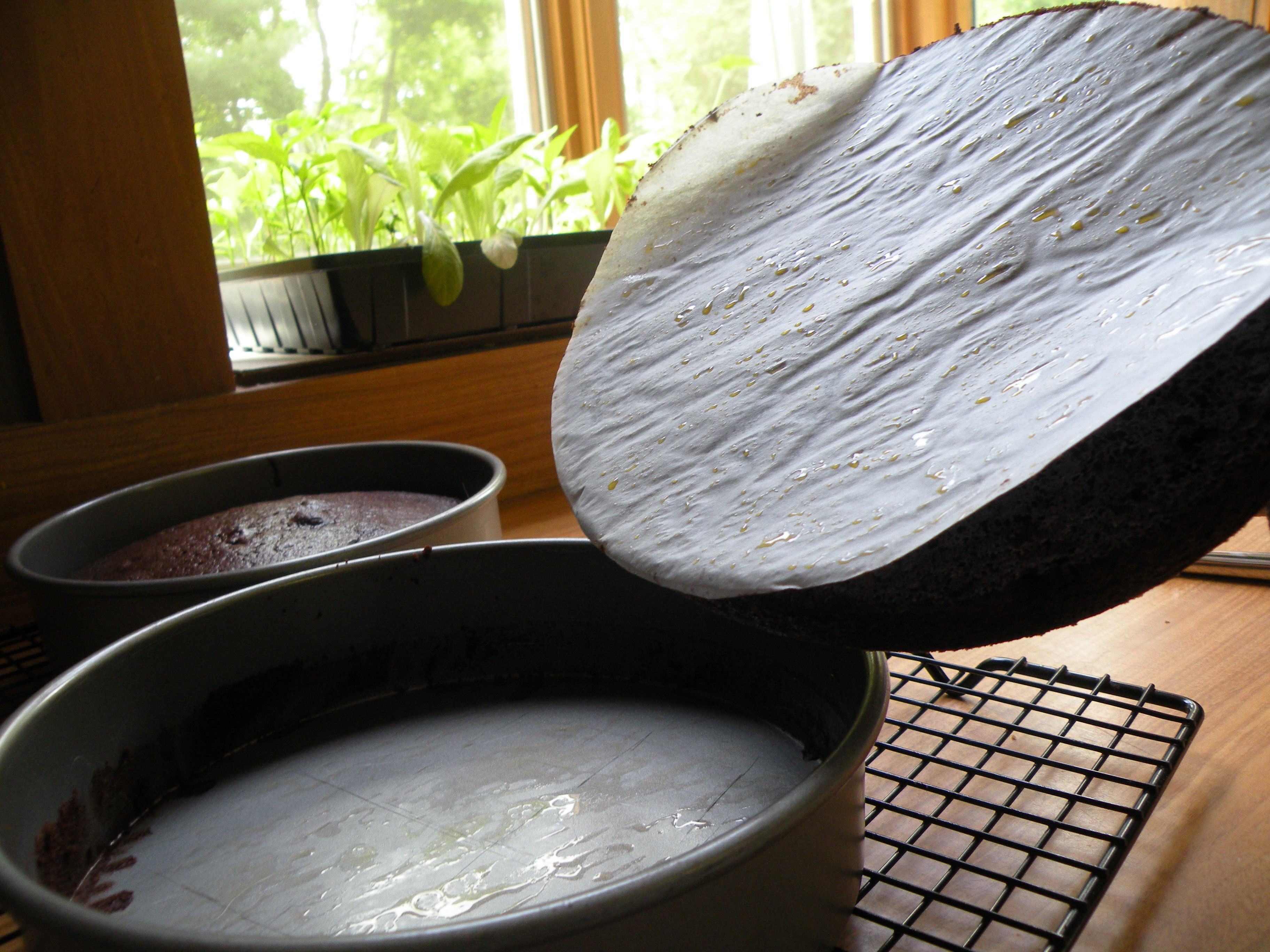 IMPORTANT: If you ever bake a cake again, please cut out two circles of parchment paper and place on the bottom of each. Grease the pan, lay down the parchment circle and grease the top. This will prevent your cake from sticking to the pan and will make the removal virtually flawless.