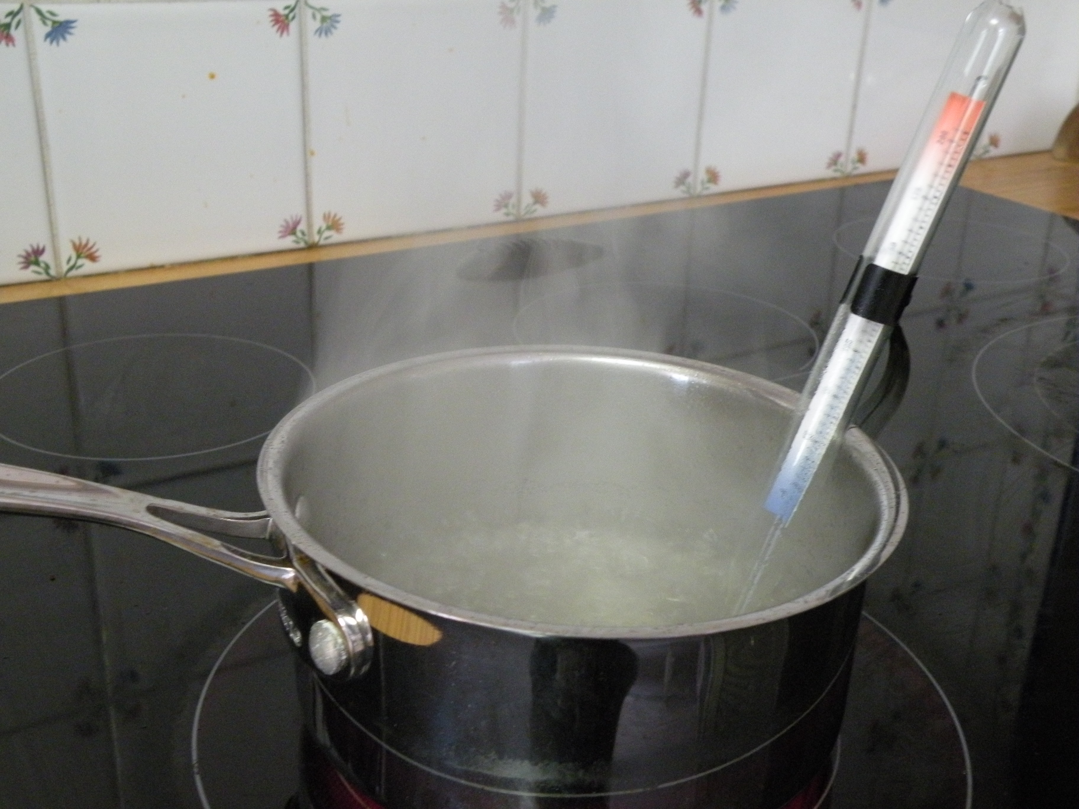 While the cakes are cooling, you can make the frosting. You will need a candy thermometer to pull this frosting off. Don’t be scared – it’s worth learning the technique!