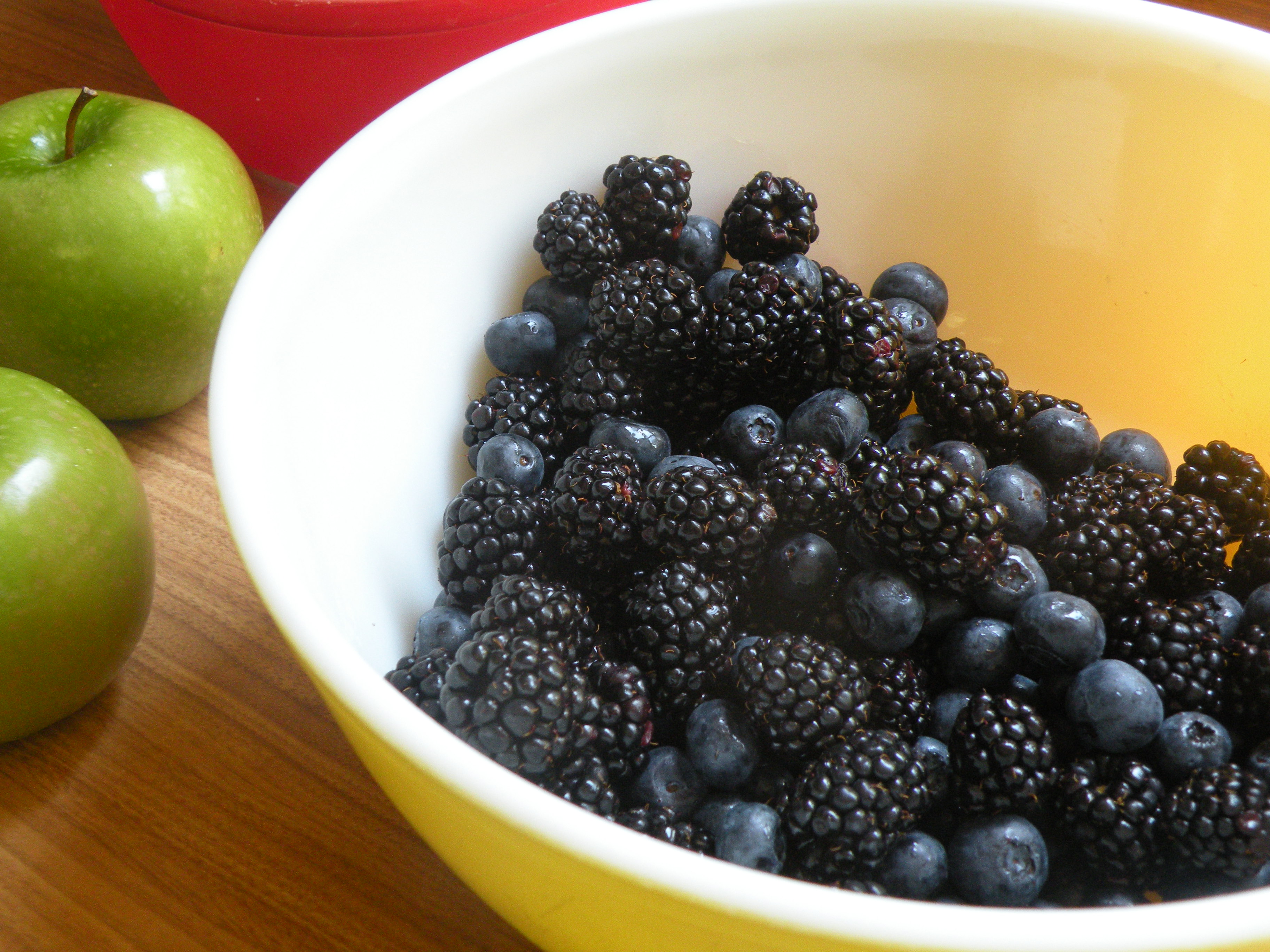 In a large bowl, mix blueberries and blackberries with grated apple. Gently toss mixture with lemon juice.