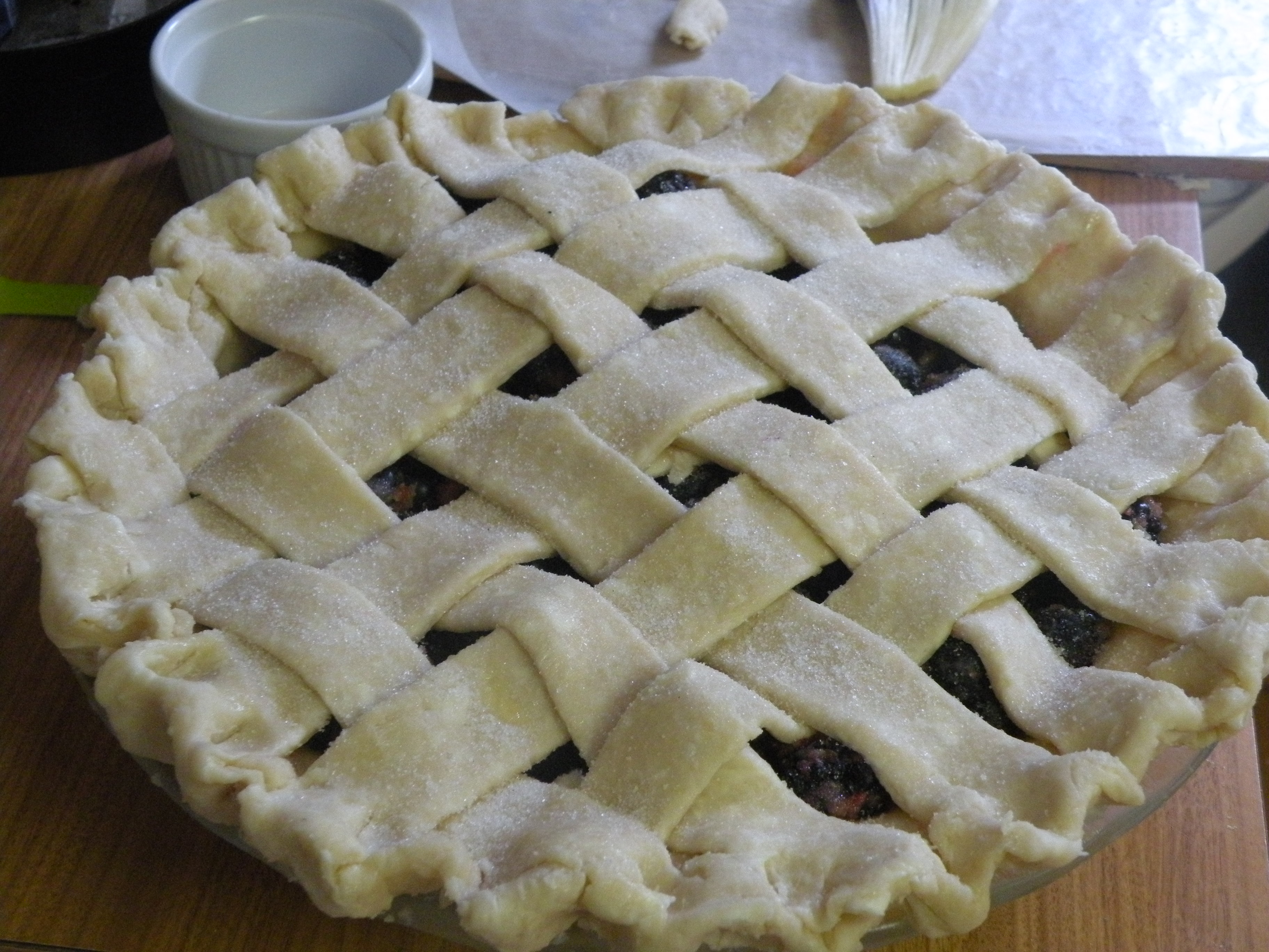 Combine egg with 1 Tablespoon of water in small bowl. Brush lattice crust lightly with egg wash and sprinkle with sugar.